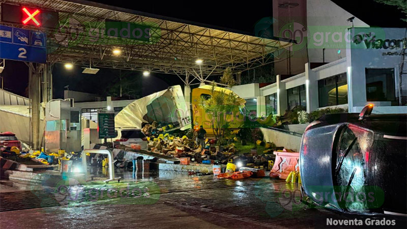 Tráiler se queda sin frenos en la caseta de Zinapécuaro de la autopista de Occidente; se lleva varios vehículos y deja seis heridos